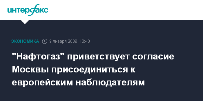 Киев. 9 января. INTERFAX.RU - Национальная акционерная компания (НАК) "Нафтогаз Украины" приветствует принятие "Газпромом" предложения украинской компании о включении российских наблюдателей в состав мониторинговой группы Еврокомиссии, сообщил агентству "Интерфакс-Украина" начальник управления по связям с общественностью НАК Валентин Землянский.