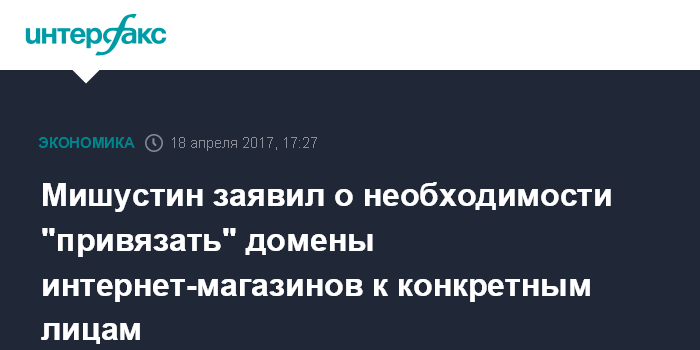 Москва. 18 апреля. INTERFAX.RU - Домены, с которых осуществляется интернет-торговля, необходимо привязать к юридическим или физическим лицам, заявил глава Федеральной налоговой службы Михаил Мишустин.