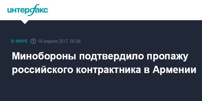 Минобороны подтвердило пропажу российского контрактника в Армении