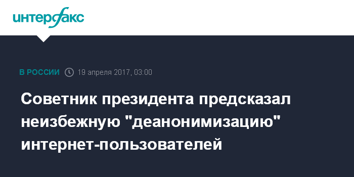Советник президента предсказал неизбежную "деанонимизацию" интернет-пользователей