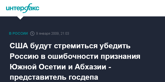 США будут стремиться убедить Россию в ошибочности признания Южной Осетии и Абхазии - представитель госдепа