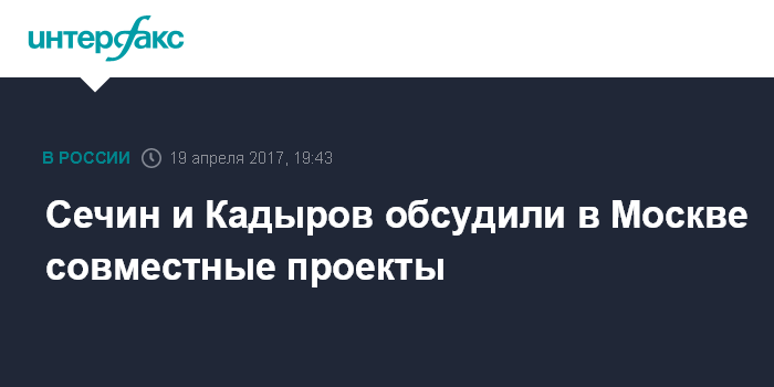 Сечин и Кадыров обсудили в Москве совместные проекты