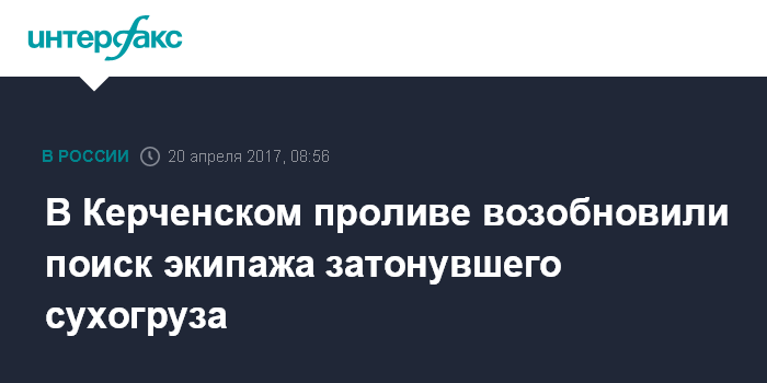 Москва. 20 апреля. INTERFAX.RU - Поисково-спасательные работы на месте крушения судна в Керченском проливе возобновились в четверг с 6 утра, сообщили "Интерфаксу" в пресс-службе Южного регионального центра МЧС.