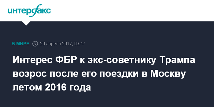 Интерес ФБР к экс-советнику Трампа возрос после его поездки в Москву летом 2016 года