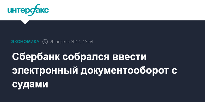 Москва. 20 апреля. INTERFAX.RU - Сбербанк прорабатывает идею введения электронного документооборота с арбитражными судами и судами общей юрисдикции, рассказал "Интерфаксу" заместитель директора правового департамента Сбербанка Владислав Колосков в кулуарах юридического форума газеты "Ведомости".