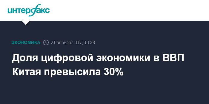 Доля цифровой экономики в ВВП Китая превысила 30%
