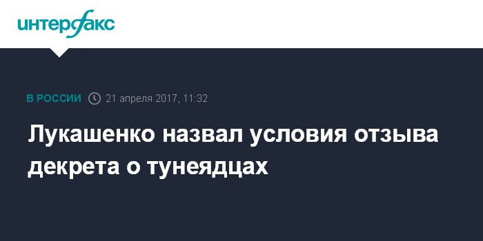 Москва. 21 апреля. INTERFAX.RU - Президент Белоруссии Александр Лукашенко заявляет, что готов отменить так называемый "тунеядский" декрет, если органы власти представят ему новую концепцию, с помощью которой можно будет заставить работать всех безработных.