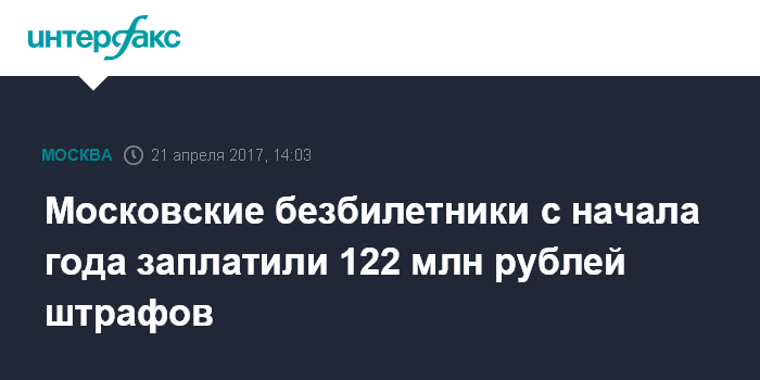 Московские безбилетники с начала года заплатили 122 млн рублей штрафов