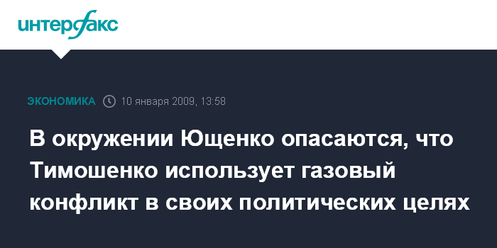 В окружении Ющенко опасаются, что Тимошенко использует газовый конфликт в своих политических целях
