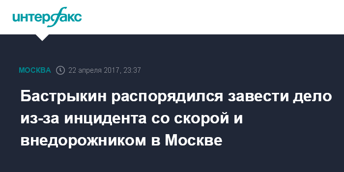 Москва. 22 апреля. INTERFAX.RU - Председатель Следственного комитета Александр Бастрыкин распорядился возбудить уголовное дело в связи с воспрепятствованием проезду машины скорой помощи, сообщила в субботу официальный представитель СКР Светлана Петренко.