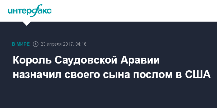 Москва. 23 апреля. INTERFAX.RU - Король Саудовской Аравии Салман бен Абдель Азиз Аль Сауд произвел сразу несколько крупных перестановок в правительстве, а также назначил своего сына послом в США, сообщает в субботу The Star.
