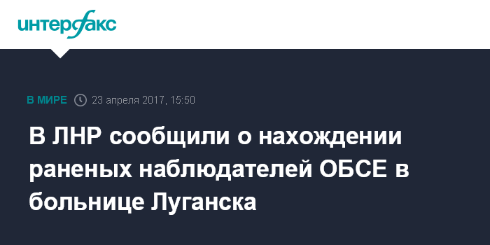 В ЛНР сообщили о нахождении раненых наблюдателей ОБСЕ в больнице Луганска