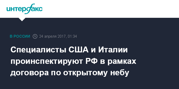 Специалисты США и Италии проинспектируют РФ в рамках договора по открытому небу
