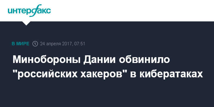 Москва. 24 апреля. INTERFAX.RU - В министерстве обороны Дании заявили о кибератаках со стороны российских хакеров. Как пишет Berlingske со ссылкой на данные ведомства, датские военные утверждают, что с 2015 по 2016 год к их электронной почте имели доступ хакеры, связанные со спецслужбами РФ.
