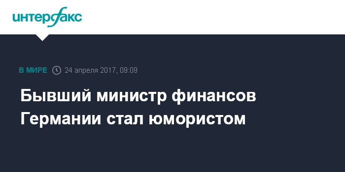 Москва. 24 апреля. INTERFAX.RU - Бывший министр финансов Германии Пеер Штайнбрюк стал артистом стендапа: в сотрудничестве с профессионалом этого жанра Флорианом Шредером он отправится в турне по стране с сатирическим шоу. Как сообщает BBC, билеты на выступления дуэта в Берлине, Гамбурге и Кельне уже полностью раскуплены.