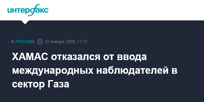 Дамаск. 10 января. INTERFAX.RU - Палестинские вооруженные группировки в Сирии, включая ХАМАС, отвергли предложение о направлении международных наблюдателей либо военных сил в сектор Газа, говорится в сообщении, размещенном на вебсайте газеты "Геральд трибьюн".