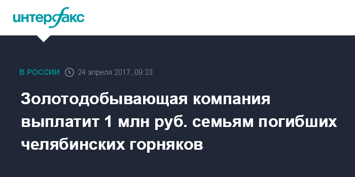 Золотодобывающая компания выплатит 1 млн руб. семьям погибших челябинских горняков