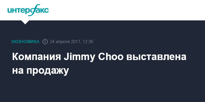 Москва. 24 апреля. INTERFAX.RU - Британская Jimmy Choo, производитель и продавец дизайнерской обуви и аксессуаров, выставлена на продажу. В сообщении компании отмечается, что она "приняла решение провести оценку различных стратегических вариантов, доступных ей для максимизации стоимости, и рассматривает предложения о покупке".