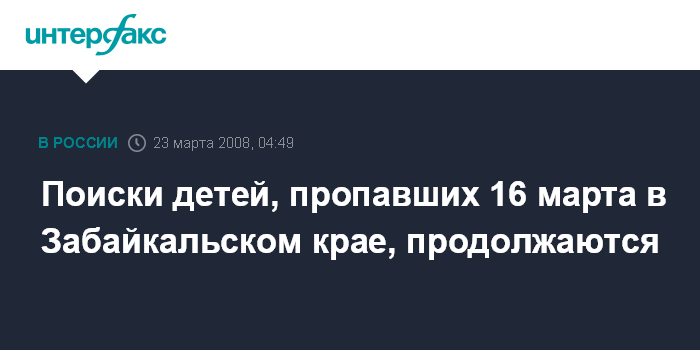 Чита. 23 марта. ИНТЕРФАКС-СИБИРЬ - Зона поиска двух мальчиков, пропавших 16 марта в поселке Карымское Забайкальского края, расширилась. В поселок доставляют подозреваемых из других районов.