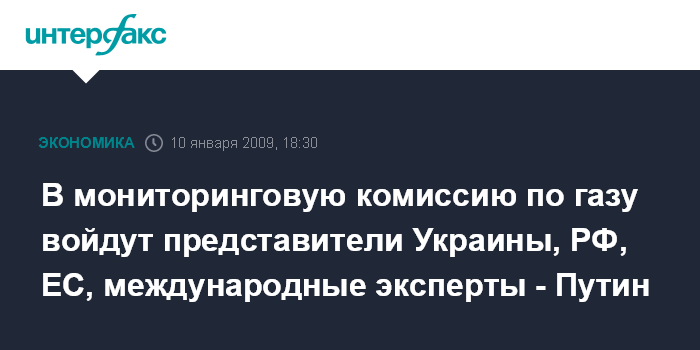 "Этими контролерами будут: представители НАК "Нафтогаз Украины", "Газпрома", эксперты Еврокомиссии, министерства энергетики России и Украины, представители европейских компаний - покупателей российского газа, эксперты международной мониторинговой организации", - сказал В.Путин на пресс-конференции.