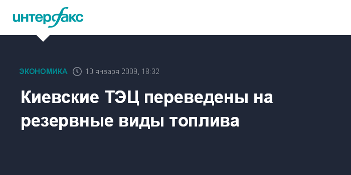 Киев. 10 января. INTERFAX.RU - ТЭЦ-5, ТЭЦ-6 и "Дартеплоцентраль" столицы Украины переведены на резервные виды топлива с целью экономии природного газа во время похолодания, сообщили в субботу в пресс-службе ОАО "Киевгаз".