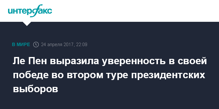 Москва. 24 апреля. INTERFAX.RU - Кандидат в президенты Франции от ультраправой партии "Национальный фронт" Марин Ле Пен выразила в понедельник уверенность в том, что сможет одержать победу на выборах.
