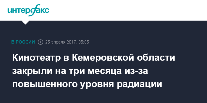 Кинотеатр в Кемеровской области закрыли на три месяца из-за повышенного уровня радиации