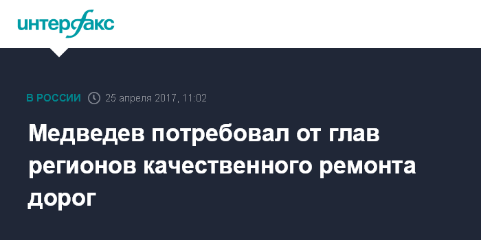 Медведев также потребовал от регионов скорейшего заключения всех запланированных на текущий год контрактов по ремонту и строительству дорог.