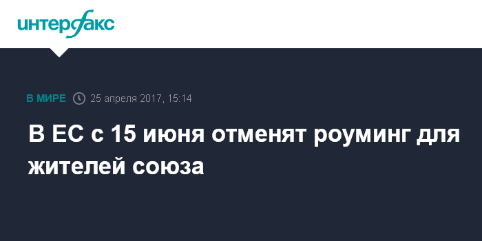 Москва. 25 апреля. INTERFAX.RU - Совет ЕС подтвердил во вторник переход на бесплатный роуминг для европейских пользователей на территории всего Евросоюза с 15 июня этого года.