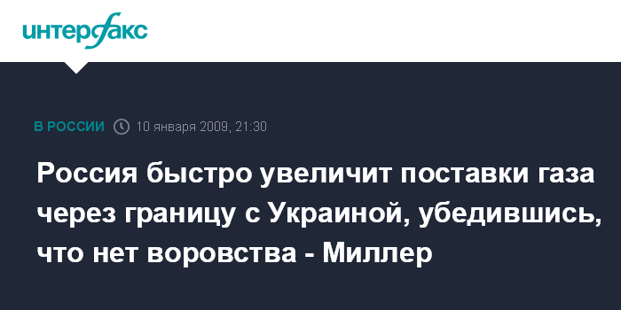 "Мы должны убедиться, что воровства российского газа на Украине больше нет и после этого быстрыми темпами увеличить объемы поставок", - сказал А.Миллер, выступление которого было показано в эфире российского Первого канала.
