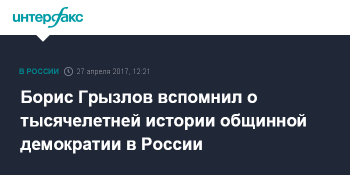 Борис Грызлов вспомнил о тысячелетней истории общинной демократии в России