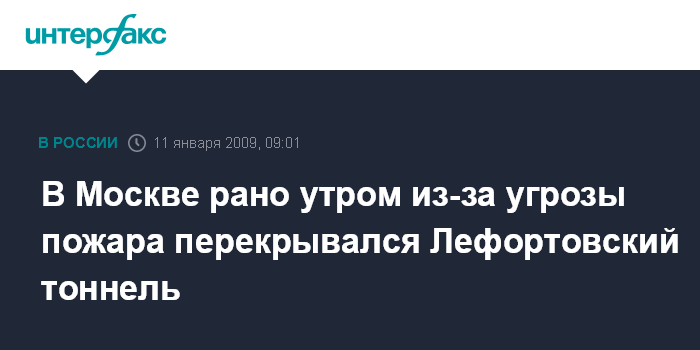 Москва. 11 января. INTERFAX.RU - Движение по Лефортовскому тоннелю кратковременно перекрывалось рано утром в воскресенье, сообщил "Интерфаксу" источник в правоохранительных органах.