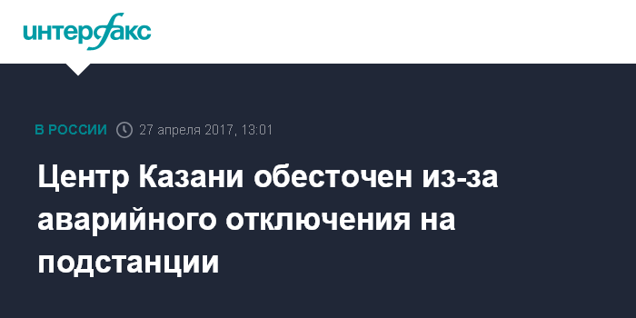"Произошло отключение электроэнергии в центральной части Казани из-за аварийного отключения на подстанции", - сообщили "Интерфаксу" в контакт-центре ОАО "Сетевая компания".