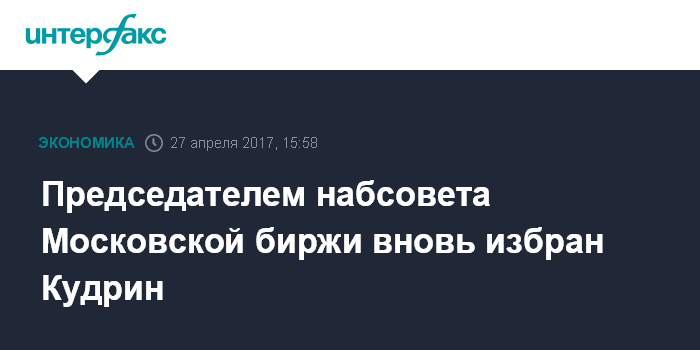 Москва. 27 апреля. INTERFAX.RU - Председателем набсовета Московской биржи вновь избран экс-министр финансов, председатель совета Центра стратегических разработок Алексей Кудрин, сообщила биржа.