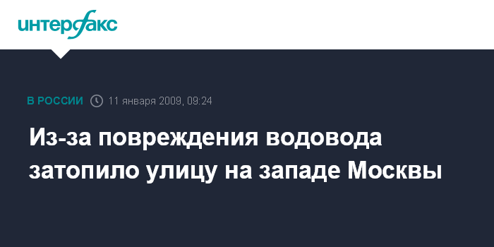 Москва. 11 января. INTERFAX.RU - Повреждение на водоводе Рублевской станции произошло этим утром, сообщили "Интерфаксу" в пресс-службе Мосводоканала в воскресенье.