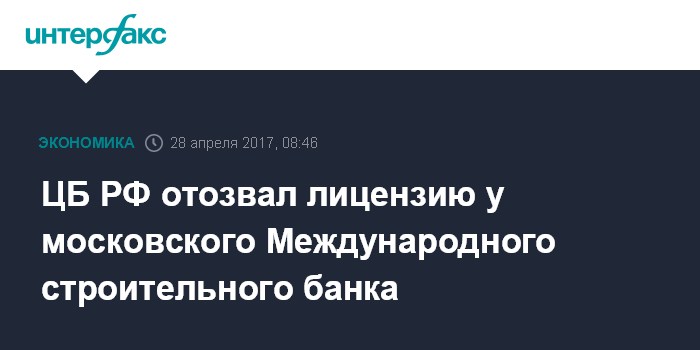ЦБ РФ отозвал лицензию у московского Международного строительного банка