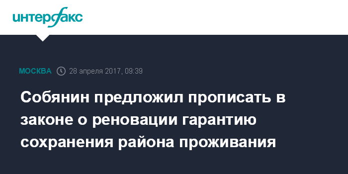Собянин предложил прописать в законе о реновации гарантию сохранения района проживания