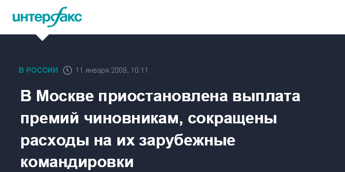 В Москве приостановлена выплата премий чиновникам, сокращены расходы на их зарубежные командировки