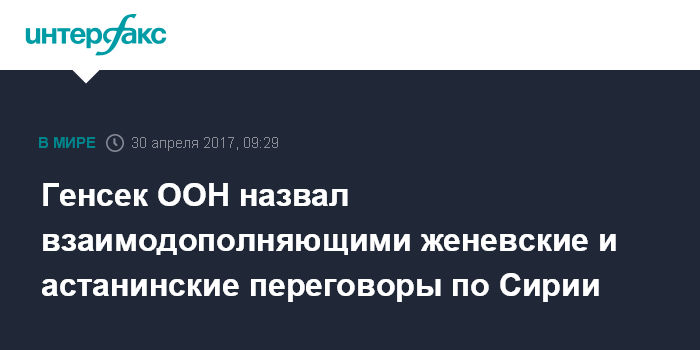 Генсек ООН назвал взаимодополняющими женевские и астанинские переговоры по Сирии