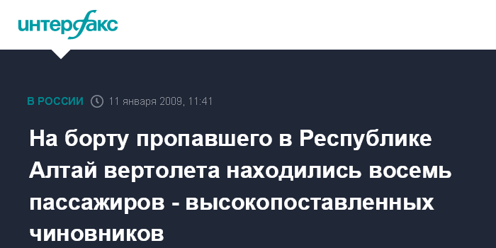 На борту пропавшего в Республике Алтай вертолета находились восемь пассажиров - высокопоставленных чиновников