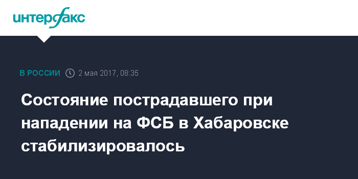 Состояние пострадавшего при нападении на ФСБ в Хабаровске стабилизировалось