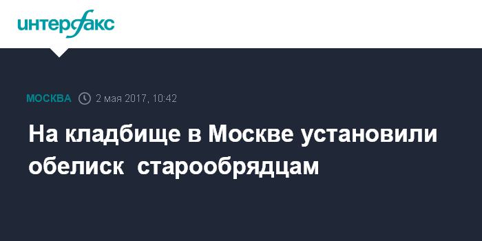 Москва. 2 мая. INTERFAX.RU - На Рогожском кладбище Москвы установили обелиск и поклонный крест в память о похороненных здесь старообрядцах, чьи памятники не сохранились.