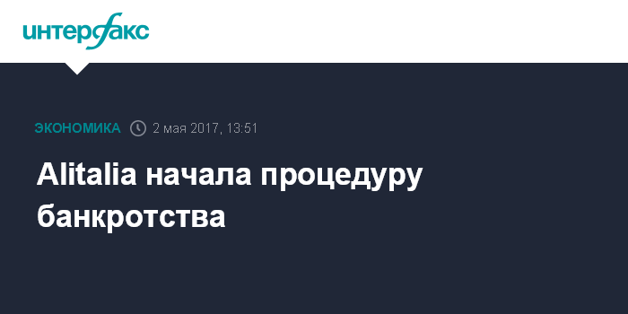 Москва. 2 мая. INTERFAX.RU - Руководство крупнейшей итальянской авиакомпании Alitalia приняло единогласное решение начать процедуру банкротства компании после того, как ее сотрудники отказались одобрить план реструктуризации.