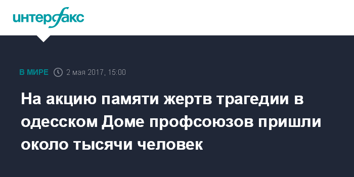 Москва. 2 мая. INTERFAX.RU - От 500 до 1 тыс. человек принимают во вторник участие в поминальной акции на Куликовом поле в Одессе во вторник, передал корреспондент агентства "Интерфакс-Украина".
