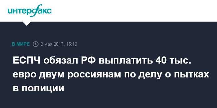 ЕСПЧ обязал РФ выплатить 40 тыс. евро двум россиянам по делу о пытках в полиции
