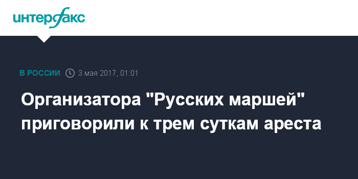 Организатора "Русских маршей" приговорили к трем суткам ареста