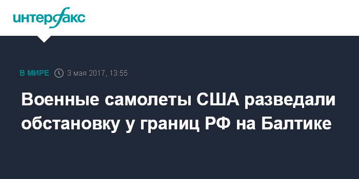 Москва. 3 мая. INTERFAX.RU - Два американских военных самолета в среду провели очередные разведывательные полеты у границ Калининградской области. Об этом свидетельствуют данные западных сайтов, отслеживающих передвижения военной авиации.