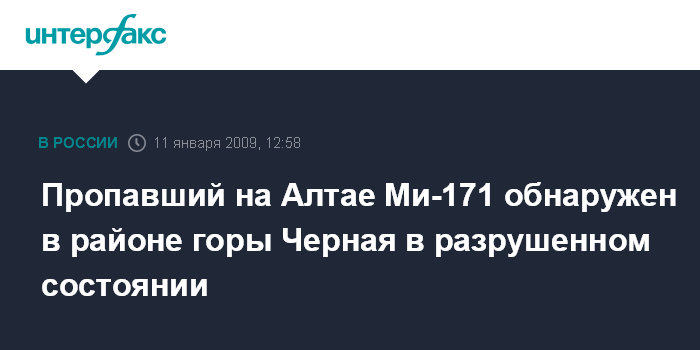 Пропавший на Алтае Ми-171 обнаружен в районе горы Черная в разрушенном состоянии