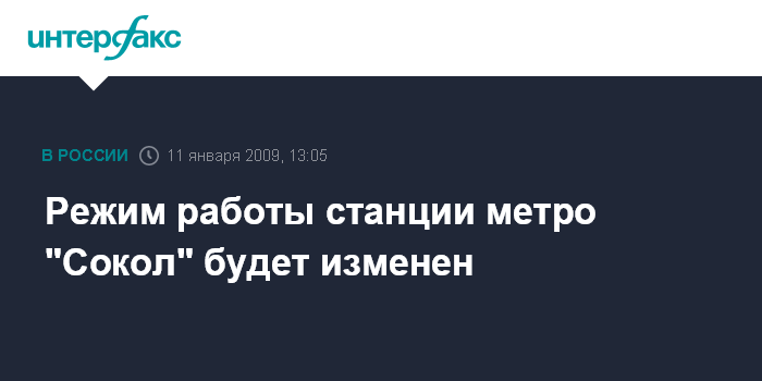 "Вход и выход пассажиров с 12 января будет осуществляться через восточный вестибюль станции "Сокол" (выход в город к Ленинградскому проспекту и улице Балтийской)", - сказал собеседник "Интерфакса".