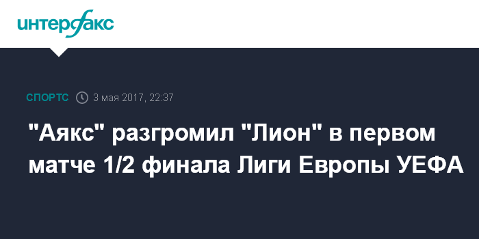 Москва. 3 мая. INTERFAX.RU - Футболисты голландского "Аякса" добились крупной победы над французским "Лионом" в первом матче полуфинальной стадии Лиги Европы УЕФА-2016/17.